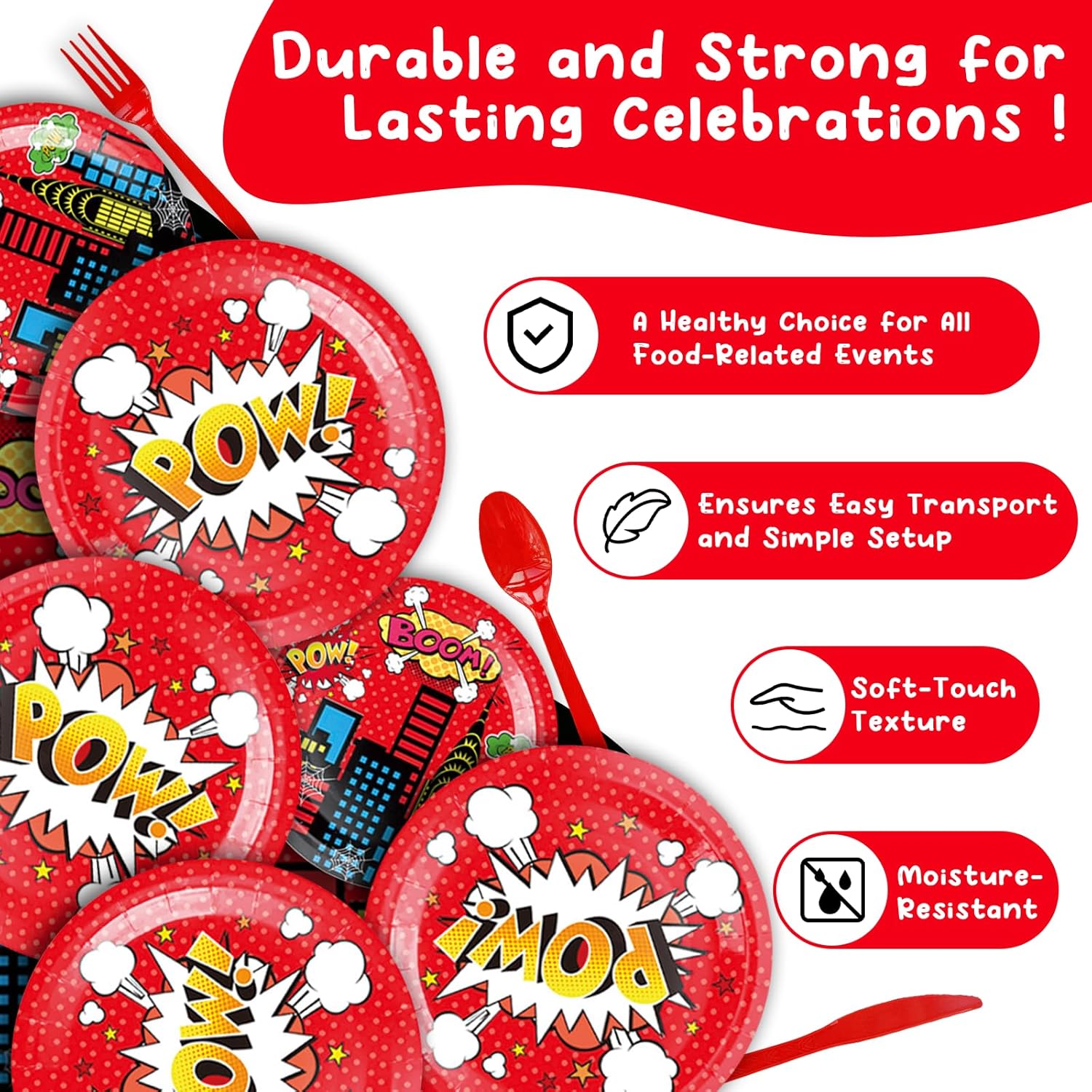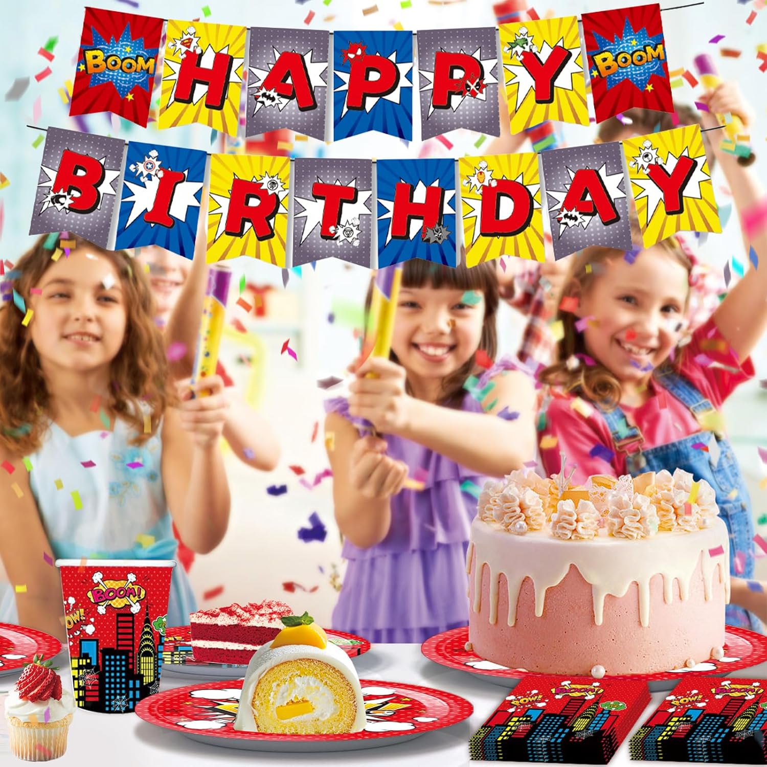 | Included Components | 24 dinner plates (9”), 24 dessert plates (7”), 24 cups, 24 napkins, 24 straws, 24 set disposable plastic utensils, plus a matching tablecloth and banner. |