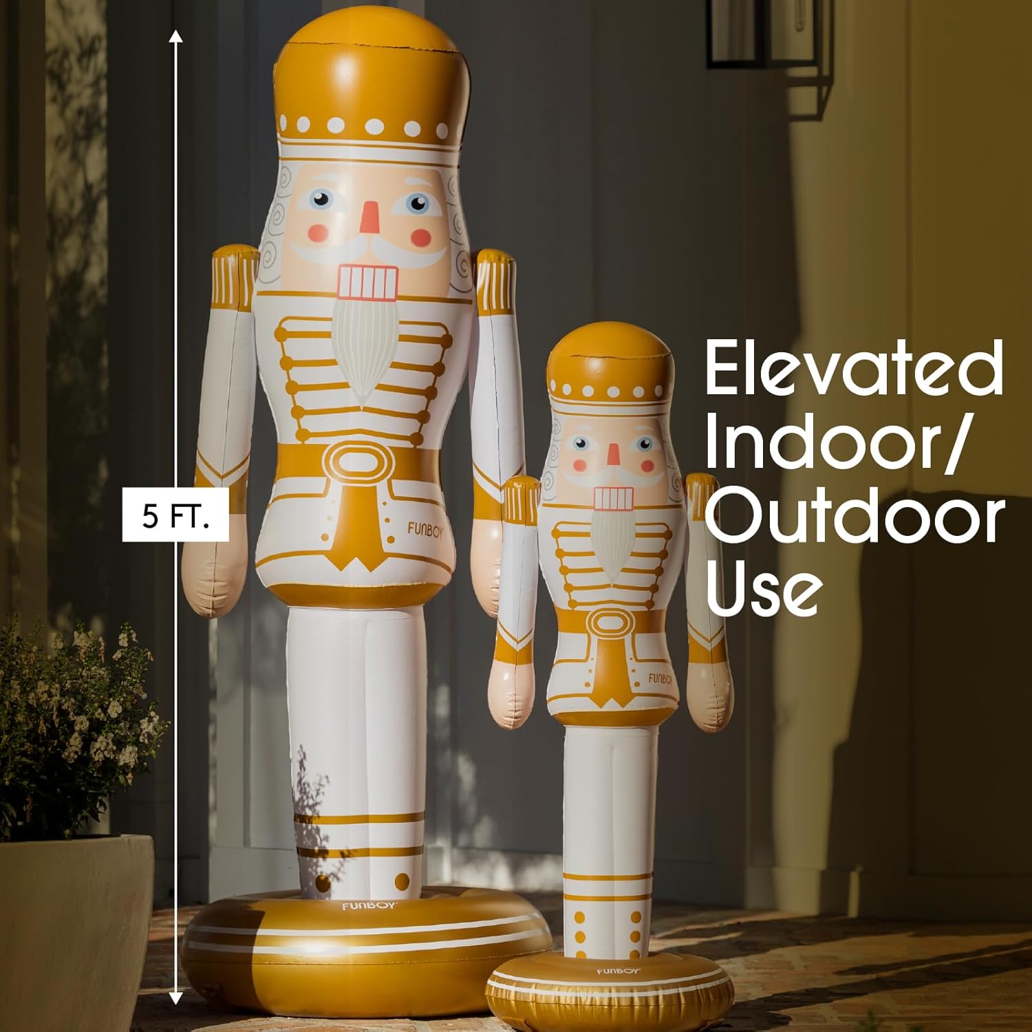 Add a touch of elegance to your holiday display with FUNBOY’s Gold Inflatable Nutcracker. Standing 5 feet tall, this striking figure blends traditional Christmas charm with a sophisticated gold-and-white design. Perfect for both indoor and outdoor use, it inflates in minutes and features durable, weather-resistant construction to withstand the winter season. Easy to set up and store, this premium inflatable makes a grand statement in doorways, yards, porches, or living spaces year after year.