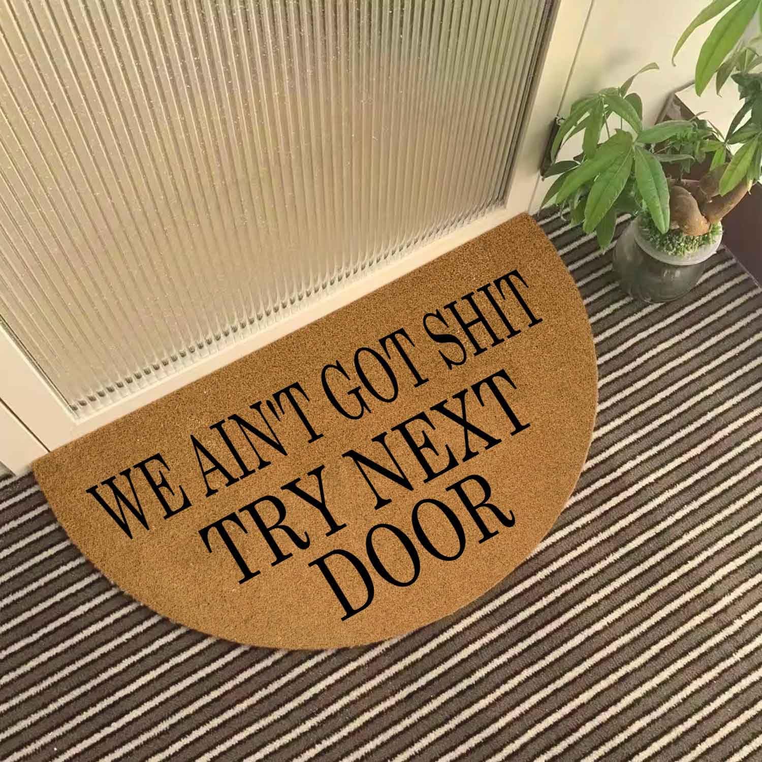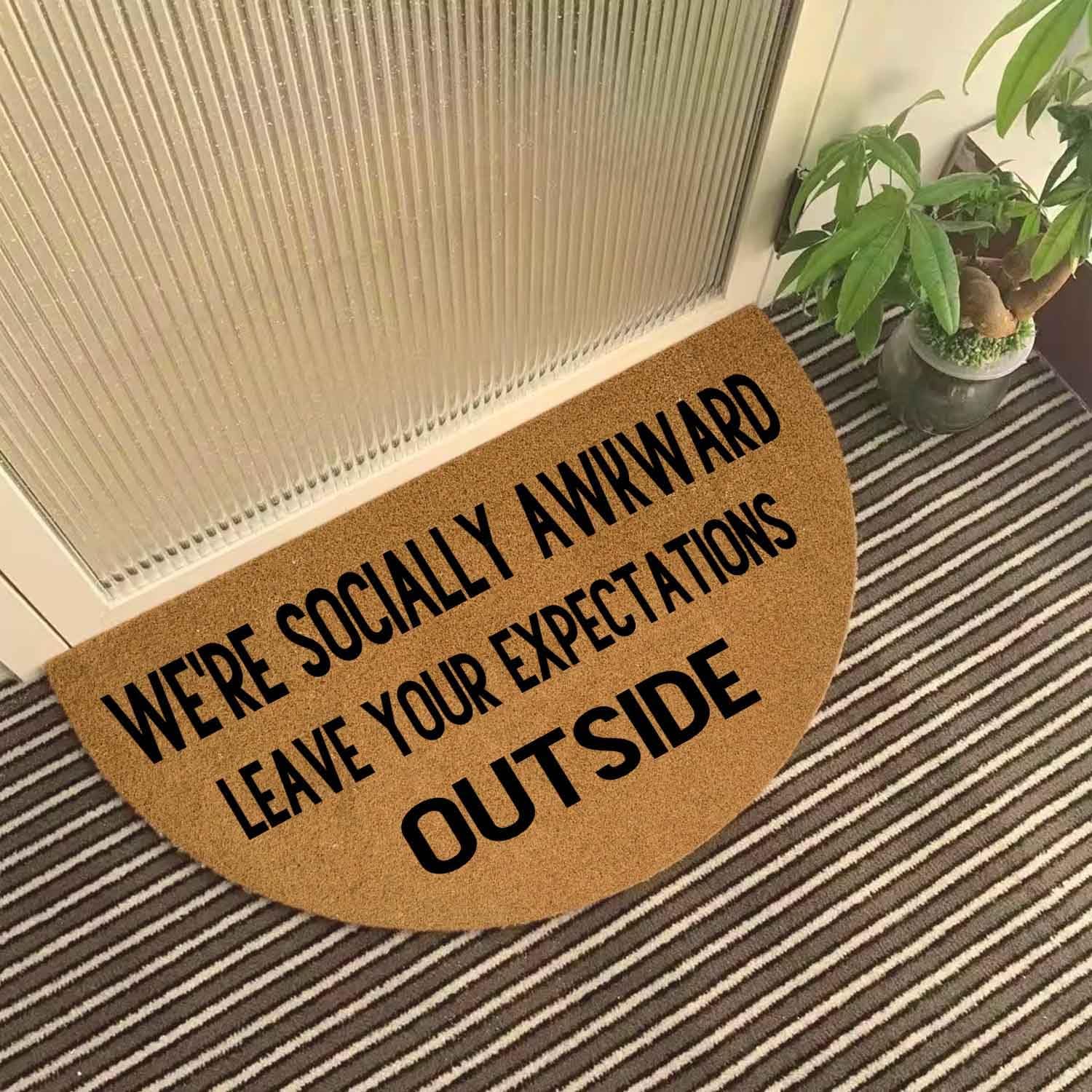 Product Description ABOUT OUR DOORMAT: -Polypropylene (with PVC Backing) -Measures 17" tall x 29.5" wide(Half Round Door Mat) -Packing list: 1 X Doormat -Clean by shaking out. It is easy to clean. Just shake briskly, or scrape mud off. For a deeper clean, wipe with a damp cloth and mild soap, or use a garden hose to rinse it. Allow your mat to air dry before using it again. If you have any questions about our product, please feel free to contact us and we will reply to any email within 24 hours. We offer you the best service! Thank you for being our customer.