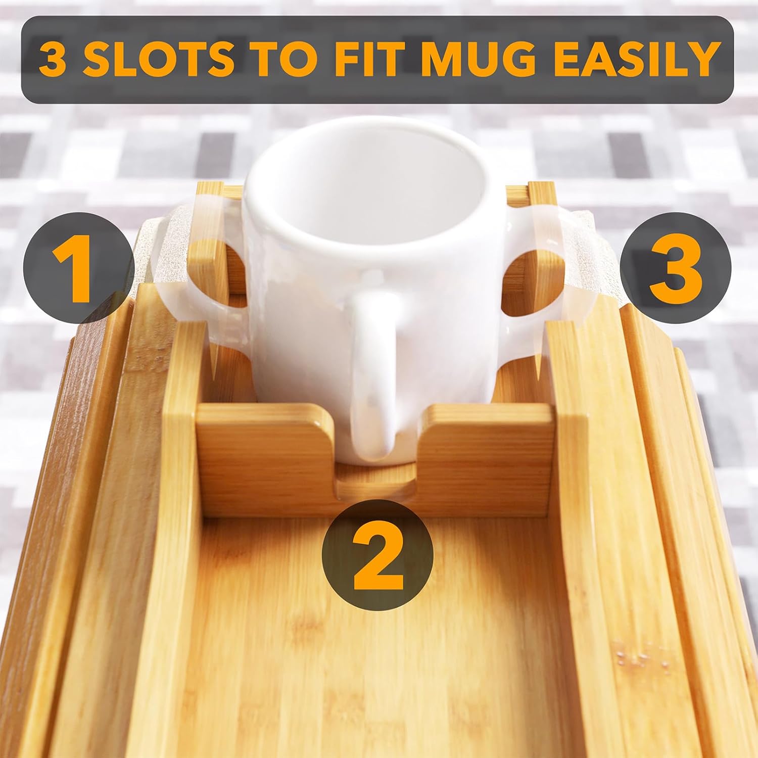 SpaceAid Bamboo Couch Cup Holder, Anti Falling Foldable Sofa Armrest Tray with Cup holder, Couch Arm Side Table Organizer for Drink Cup Remote Snacks (Natural)